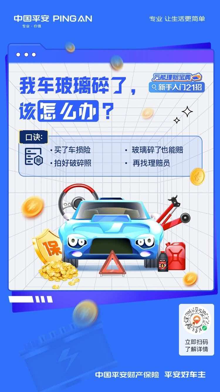 中国平安|买了车损险,玻璃碎了也能赔,拍好破碎照,再找理赔员