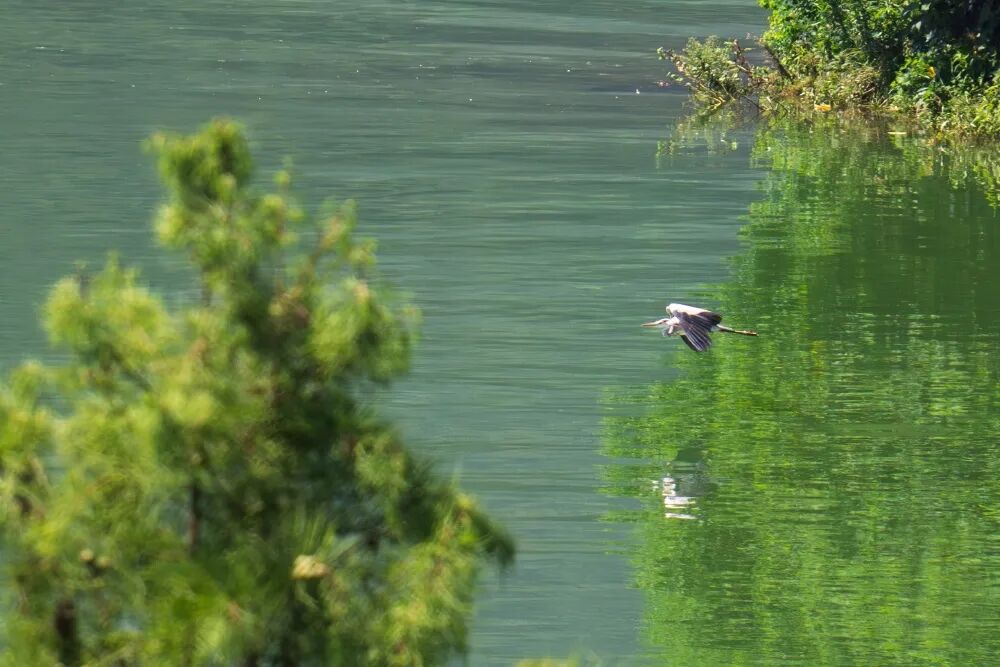 开州区汉丰湖国家湿地公园,苍鹭贴近湖面飞翔。(资料图片)记者 李雨恒 摄
