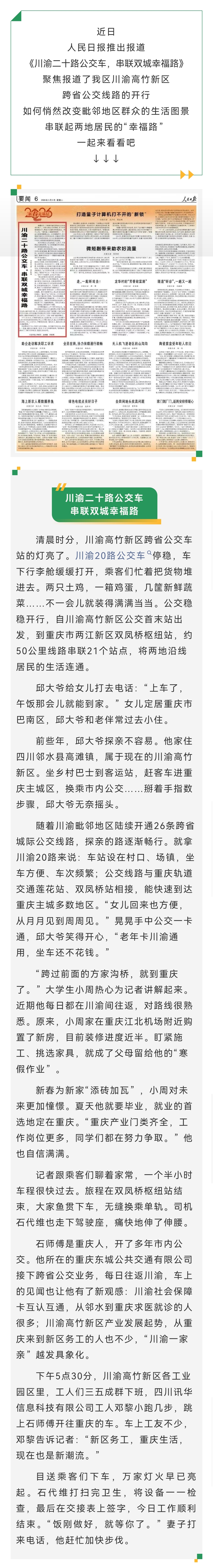 媒体聚焦 | 人民日报关注川渝高竹新区: 跨省公交串联双城“幸福路”