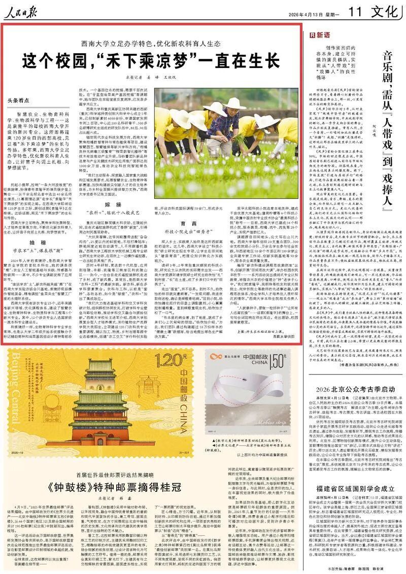 西南大学立足特色,聚焦学科发展转型、人才培养变革等方向,不断优化新农科育人生态,让好苗子向泥土扎根、向梦想拔节。