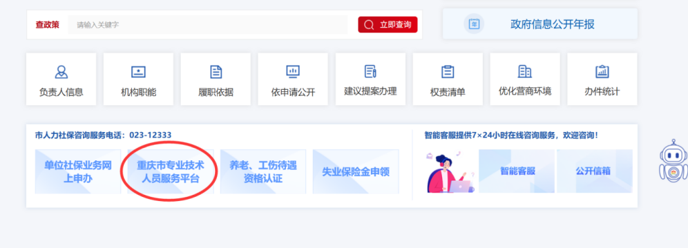 登录重庆市人力资源和社会保障局官网(网址:https://rlsbj.cq.gov.cn/)。