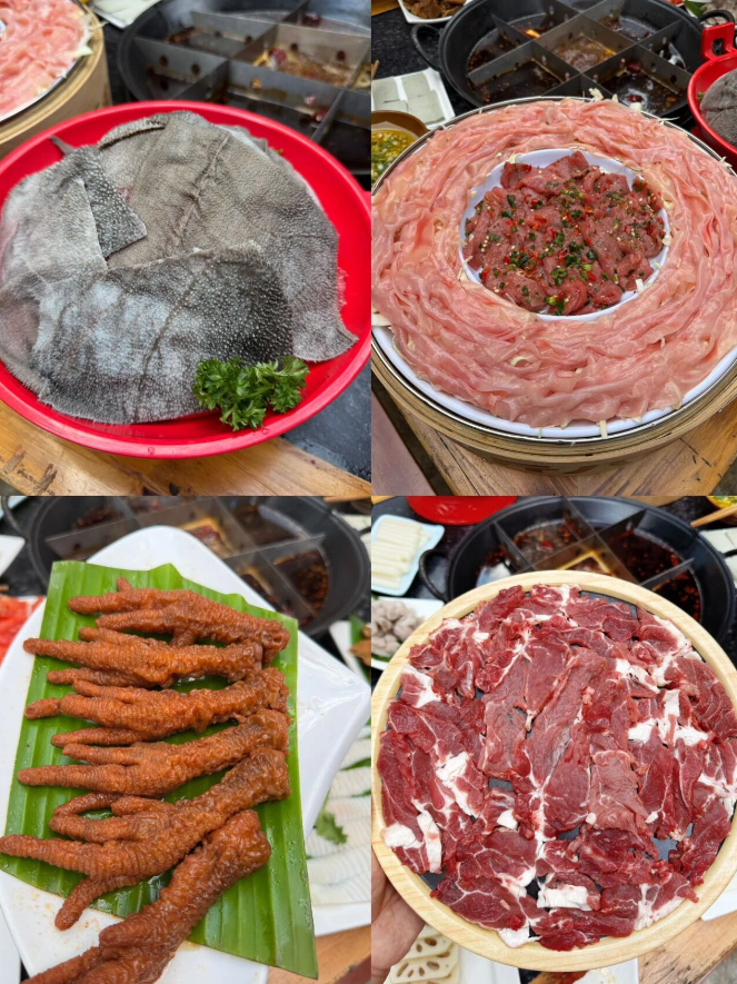 牛肉+鸭肠的拼盘,牛肉鲜嫩多汁,鸭肠脆嫩弹牙,红汤里涮10秒,蘸上蒜泥香油,鲜到灵魂出窍!