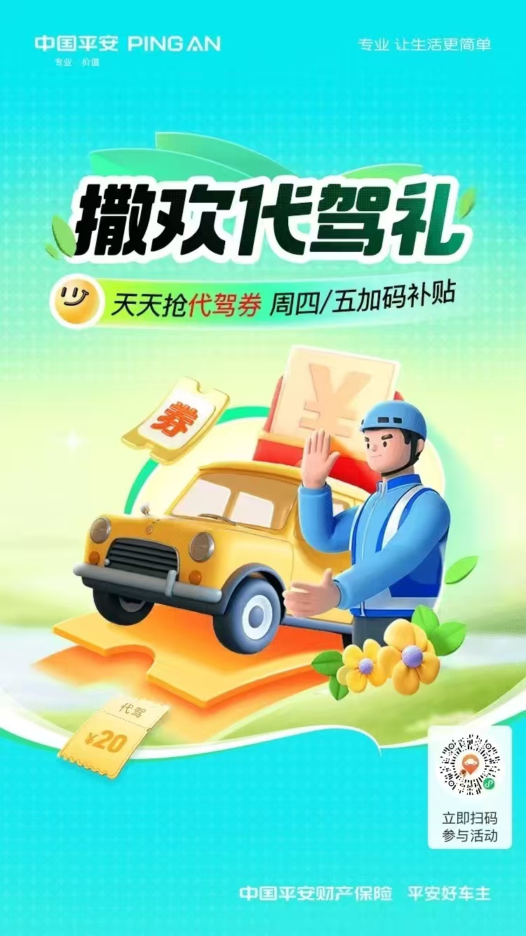 中国平安 | 撒欢代驾礼,天天抢券,周四/周五加码补贴