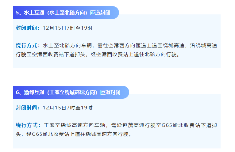 12月13日至12月18日因绕城高速多个互通匝道