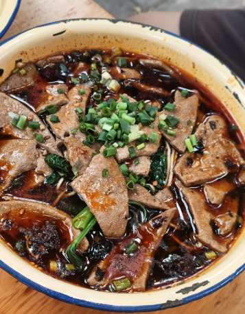 油汪汪的肥肠浸满了骨汤汤底,软烂醇香,
