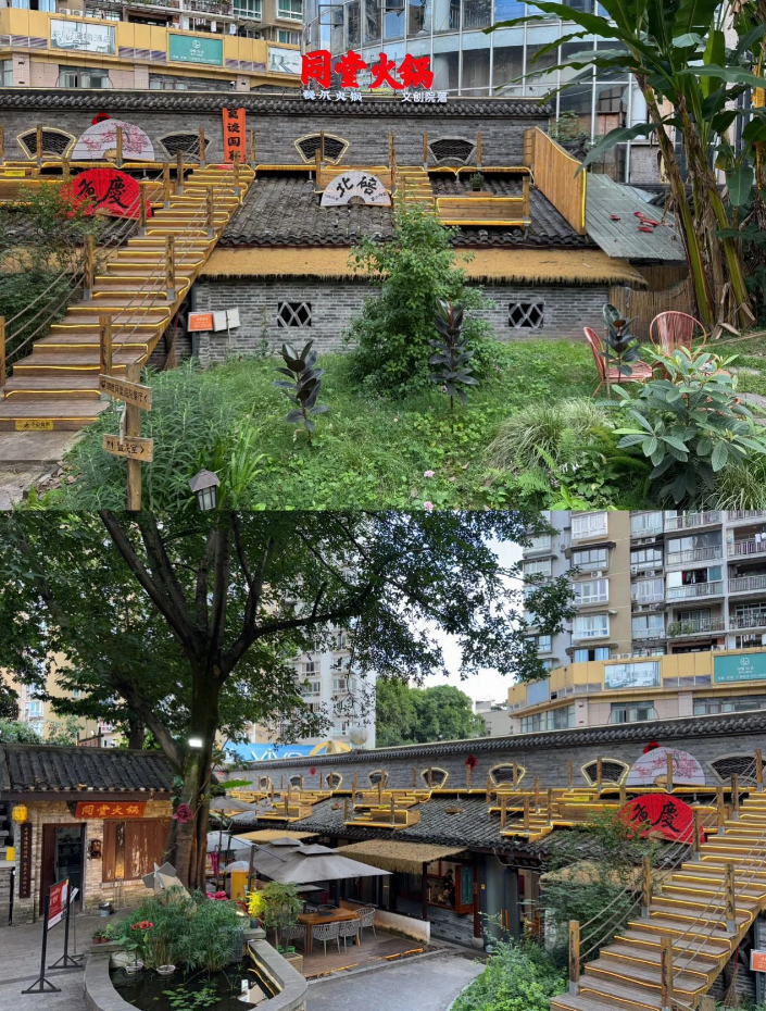 在重庆北碚区,同堂火锅绝对是“环境天花板”级别的存在!藏在老舍故居内,背靠缙云山,绿树环绕,连空气里都飘着书香与牛油香。