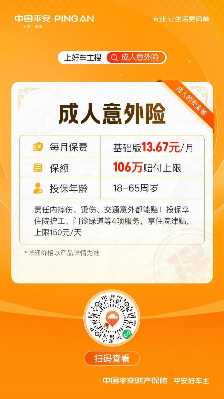 中国平安 | 上好车主搜成人意外险,享住院绿通/门诊护工等专属守护