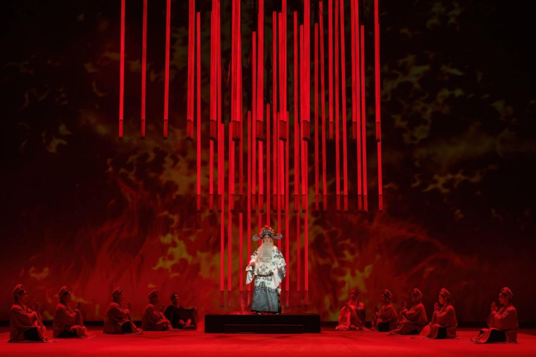 演出简介:该剧紧扣颜真卿46岁至76岁就义的跌宕人生,奠定了剧目坚实且富有张力的叙事基础,并创新将传统“三面戏台”与现代“镜框舞台”结合,以头盔为“点”、帐杆为“线”、帐幔为“面”,通过极简的舞美语汇,灵动转化出城阙、军帐、沙场、禅庙等场景,尽显中式审美意境。