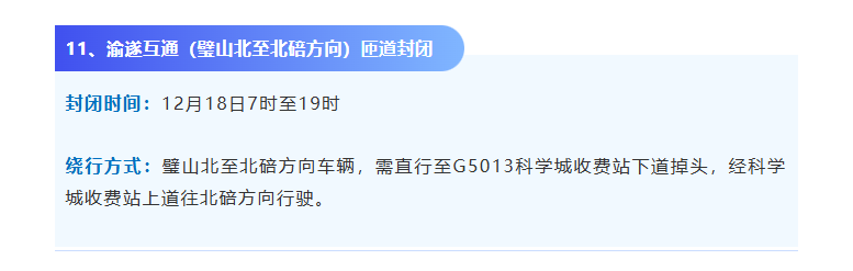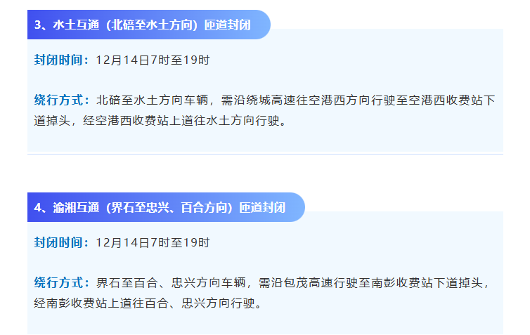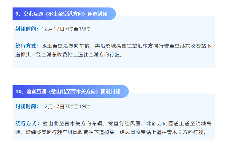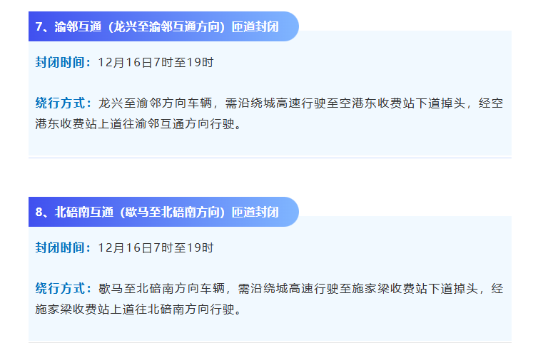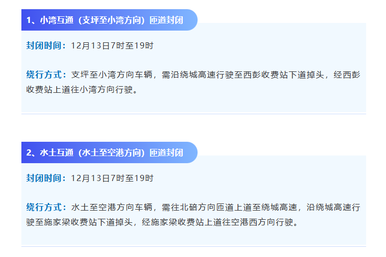 12月13日至12月18日因绕城高速多个互通匝道