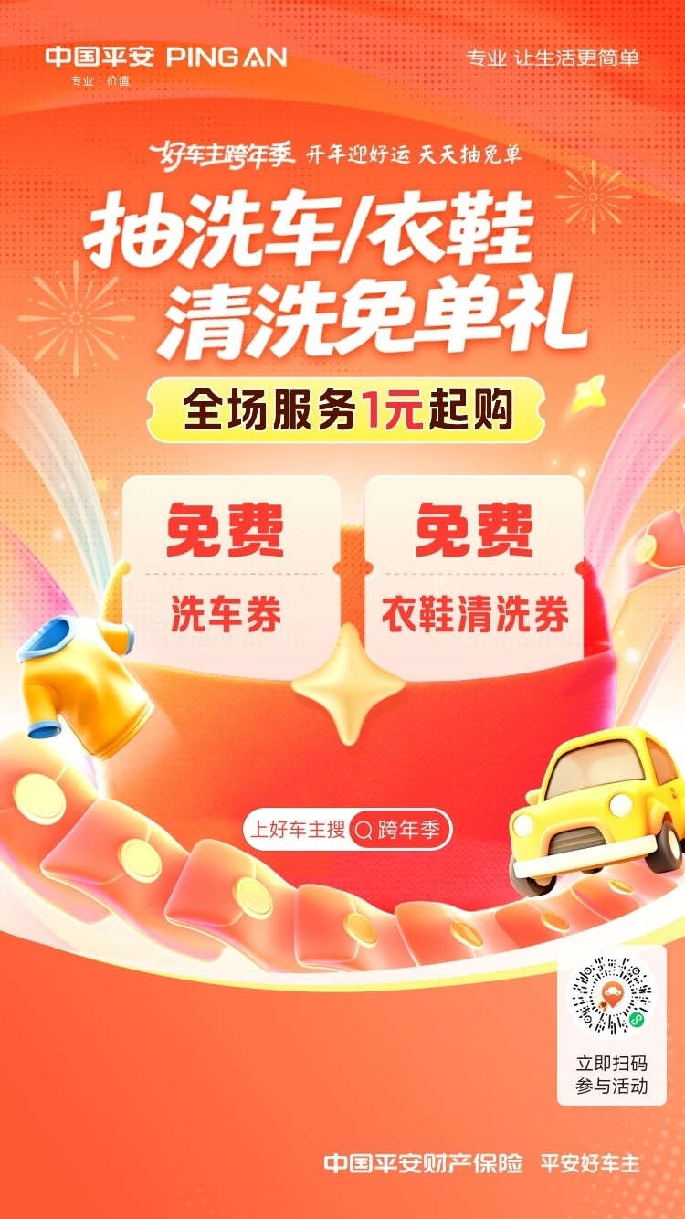 中国平安|好车主跨年季,抽洗车、衣鞋清洗免单礼