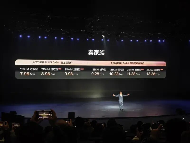 1月8日,比亚迪官方宣布秦家族长续航版迎来正式上市,2026款秦PLUS DM-i售价区间7.98-9.98万元。