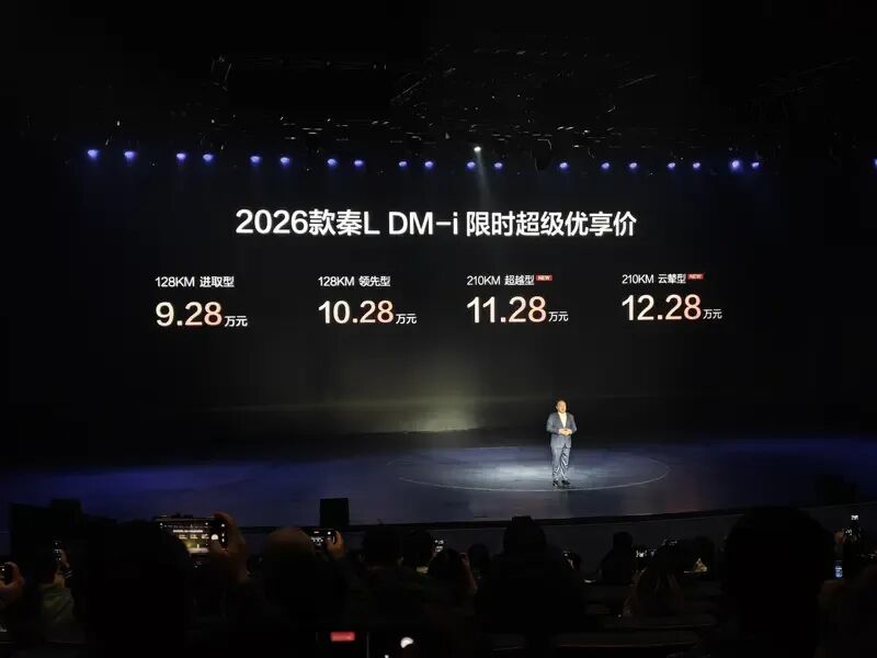 2026款秦L DM-i限时超级优享价9.28-12.28万元。